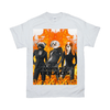 We print your finalized design on a premium classic Gildan fitted tee featuring seamless double needle collars, taped neck and shoulders, and a double needle sleeve and bottom hem.