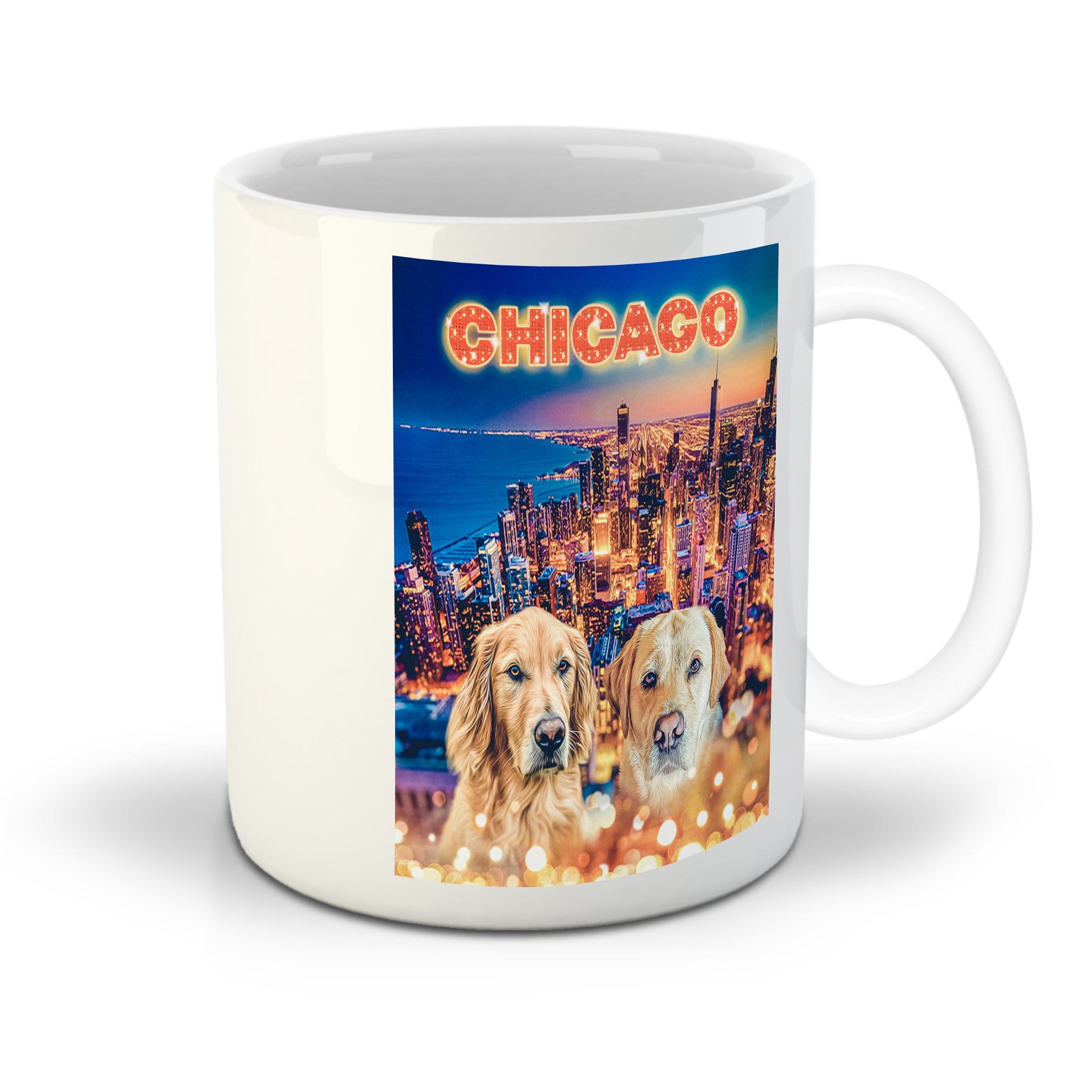Combine your favorite morning beverage with a personalized mug featuring your dogs (or any other pets)! Our ‘Doggos Of Chicago’ personalized mug is an 11 oz dishwasher safe ceramic mug featuring a personalized version of our design starring your pets’ adorable faces! Our custom mugs make a unique personalized gift for any pet owner.