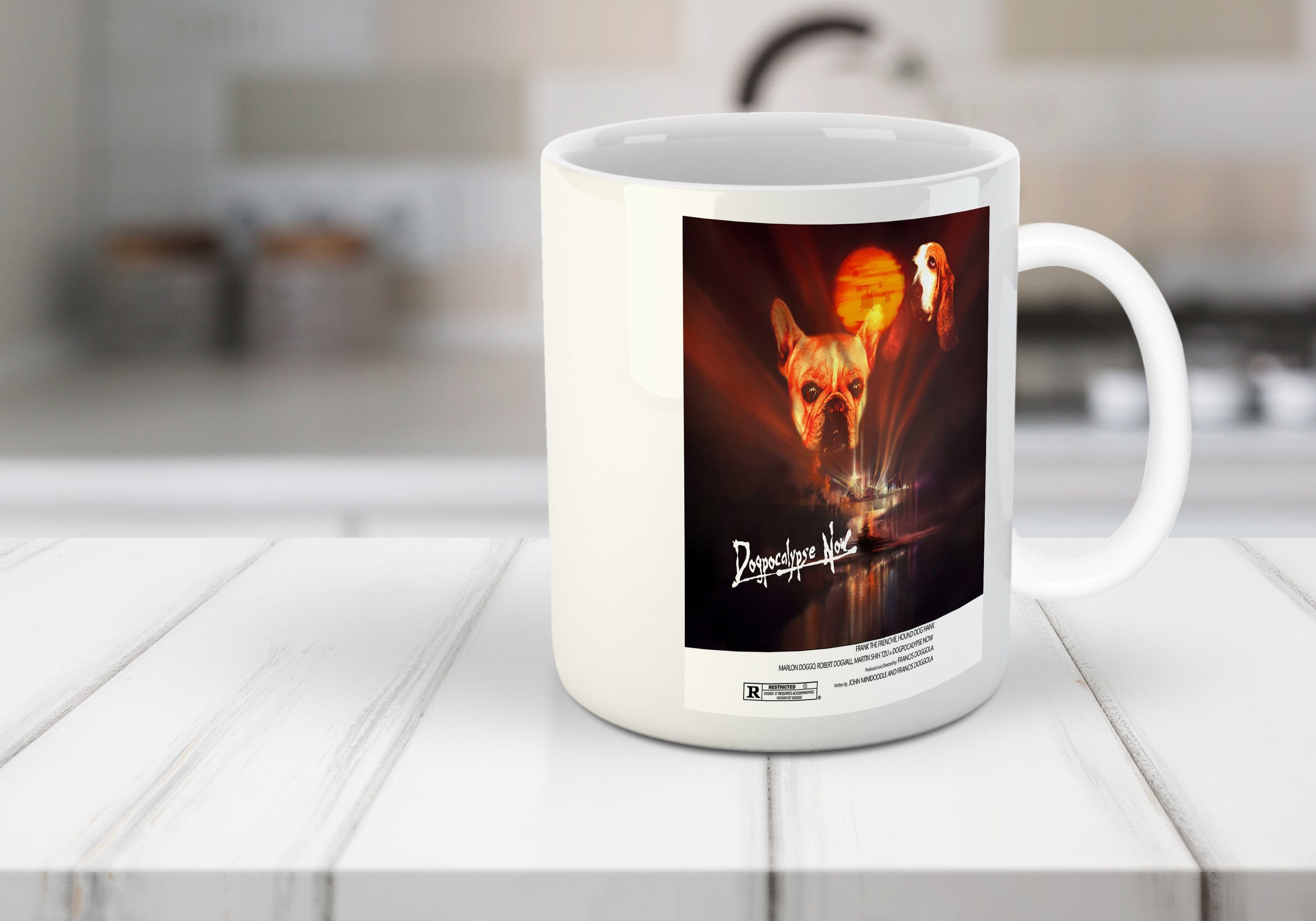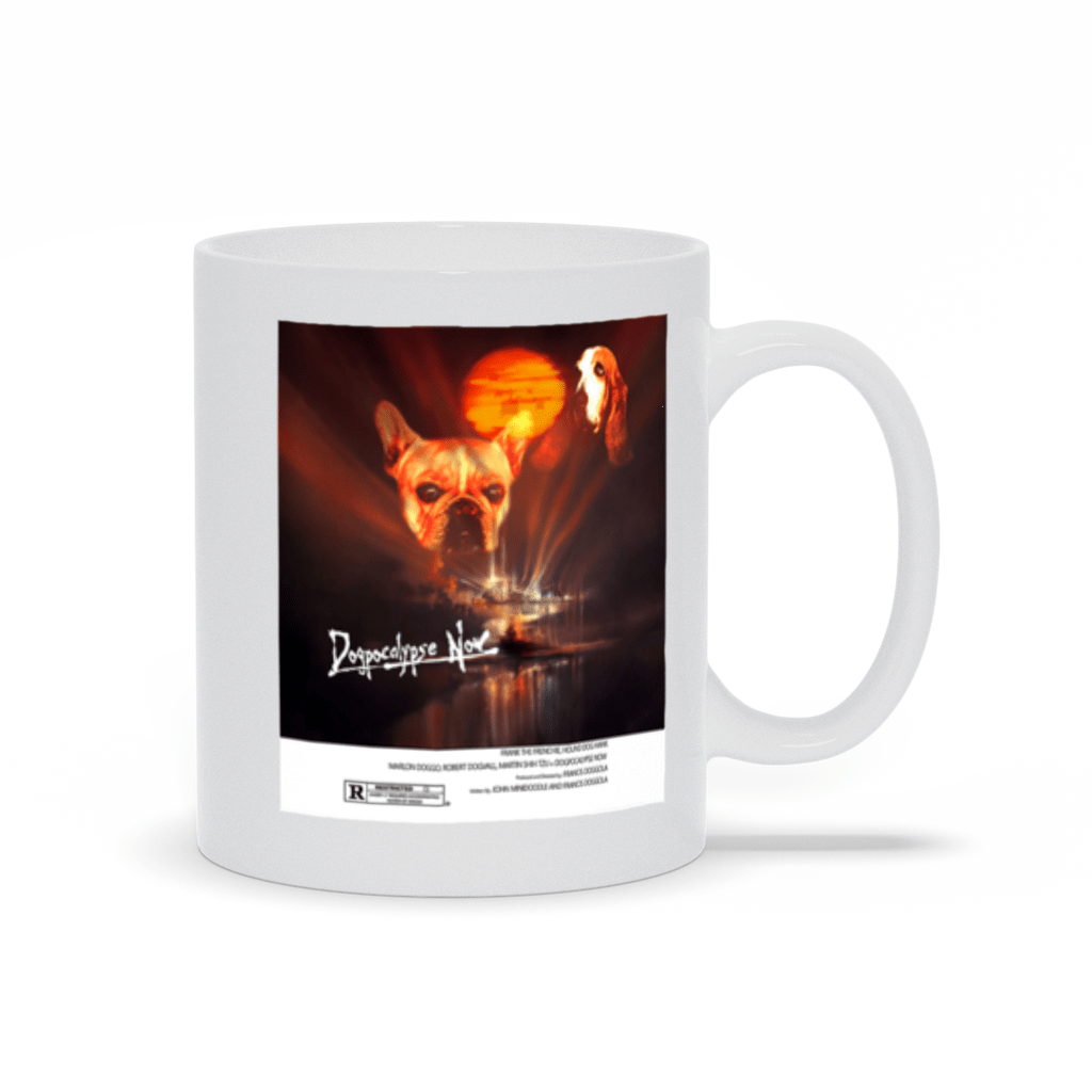 Combine your favorite morning beverage with a personalized mug featuring your dog (or any other pet)! Our Dogpocalypse Now personalized mug is an 11 oz dishwasher safe ceramic mug featuring a personalized version of our design starring your pets adorable face! Our custom mugs make a unique personalized gift for any pet owner.