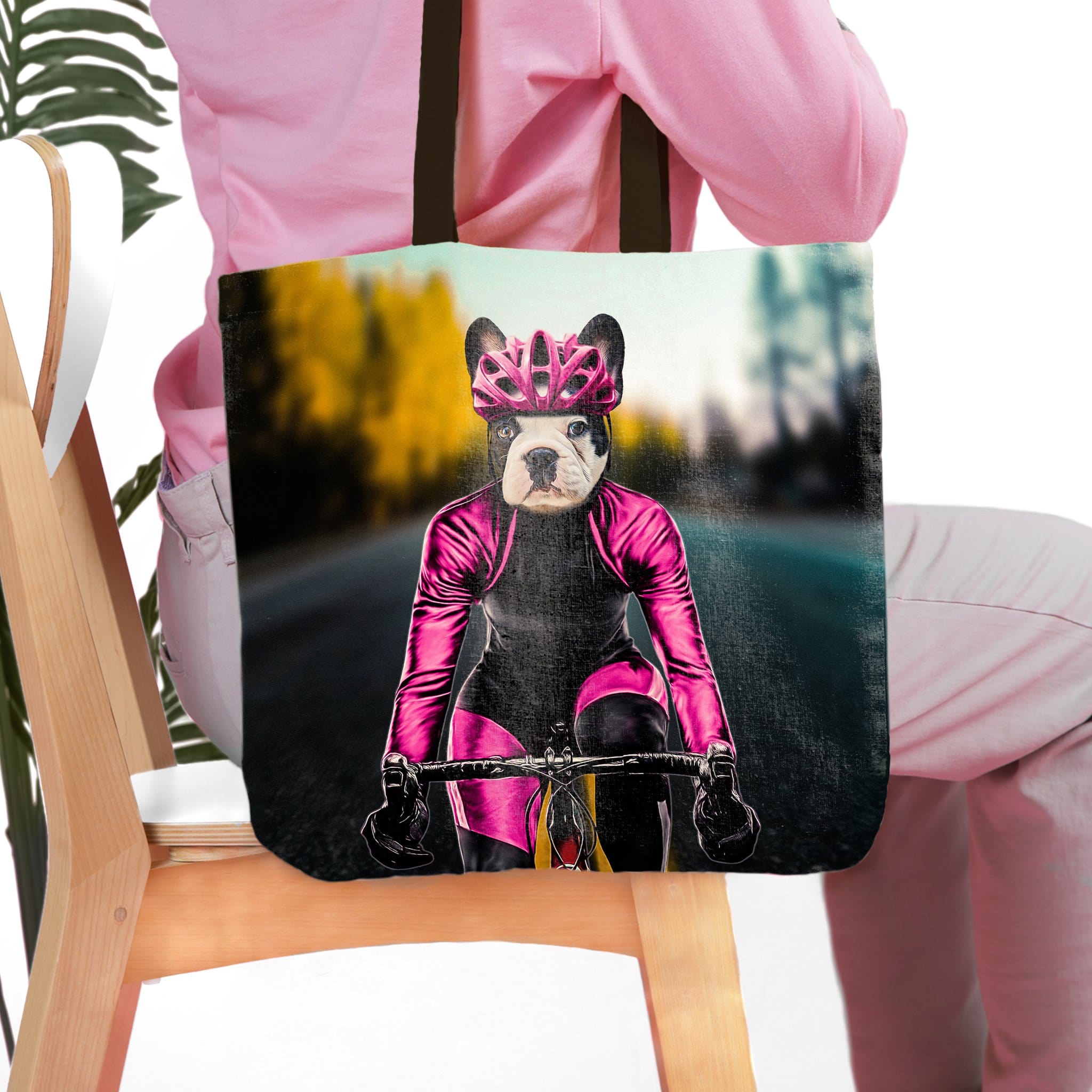 Can you picture your pet’s adorable faces on our ‘Female Cyclist’ Personalized Tote Bag? Your pet's portrait will be printed on a high-quality durable tote perfect for displaying your love for your pet! Our tote bags make a unique one-of-a-kind gift for pet lovers that are perfect for day trips, grocery shopping or everyday use!