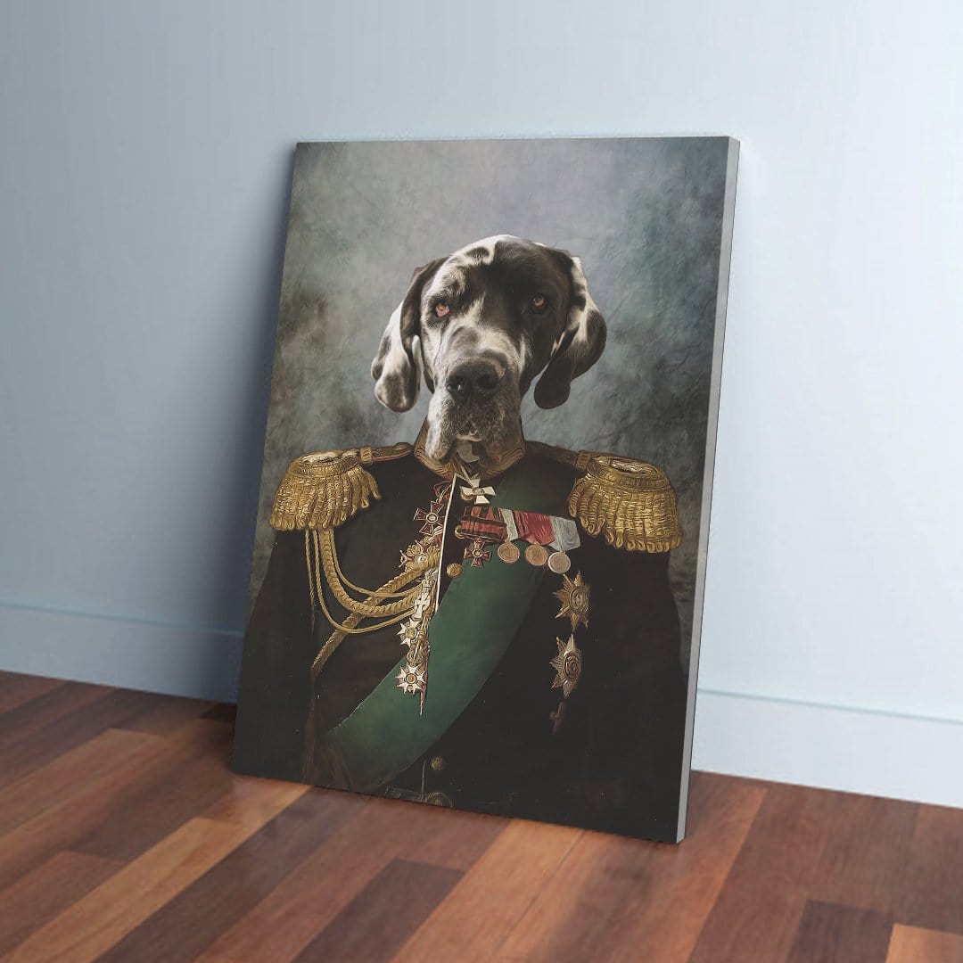Can you picture your pet's adorable face on our ‘The General’ Personalized Canvas? Hand wrapped over a hard wood frame, our gallery quality canvases are printed with premium inks and UV coating for scratch resistance.