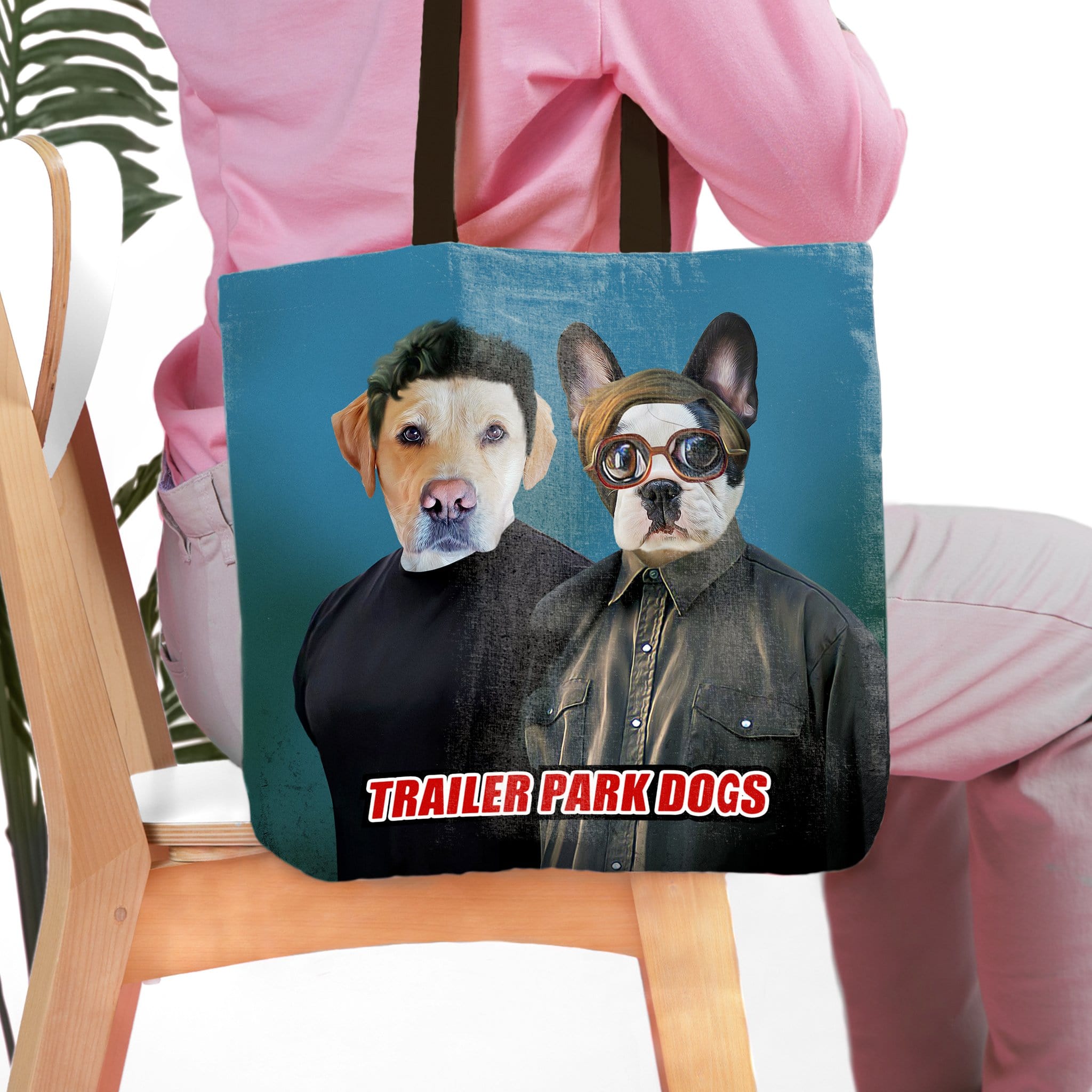 Can you picture your pets' adorable faces on our ‘Trailer Park Dogs 1’ Personalized Tote Bag? Your pet's portrait will be printed on a high-quality durable tote perfect for displaying your love for your pet! Our tote bags make a unique one-of-a-kind gift for pet lovers that are perfect for day trips, grocery shopping or everyday use!